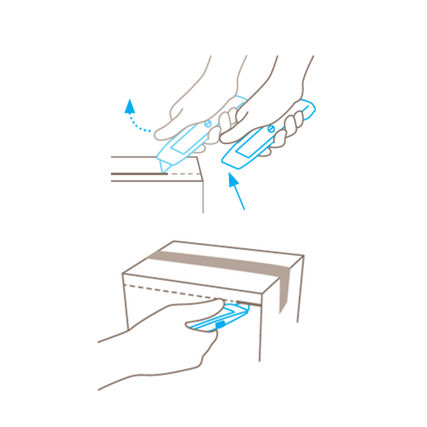 автоматичне засунення леза SECUNORM MULTISAFE забезпечує високий ступінь захисту від порізів. Щойно ви приступили до різання, приберіть великий палець із шиберної засувки. Таким чином лезо забирається назад у руків'я відразу після виходу з матеріалу, який ви розрізаєте.