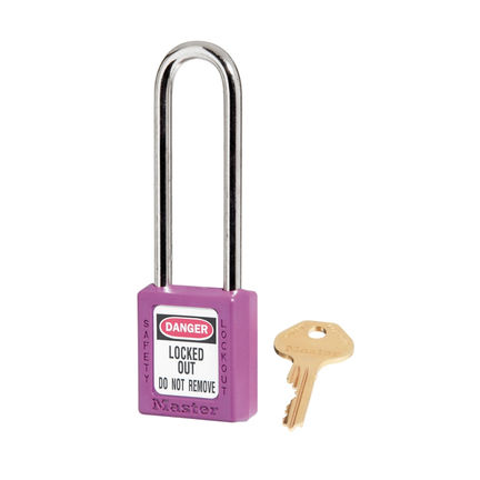 Фіолетовий термопластичний захисний замок 410LTPRL виробництва Master Lock (США) розроблений спеціально для систем LOTO (Lockout/Tagout)